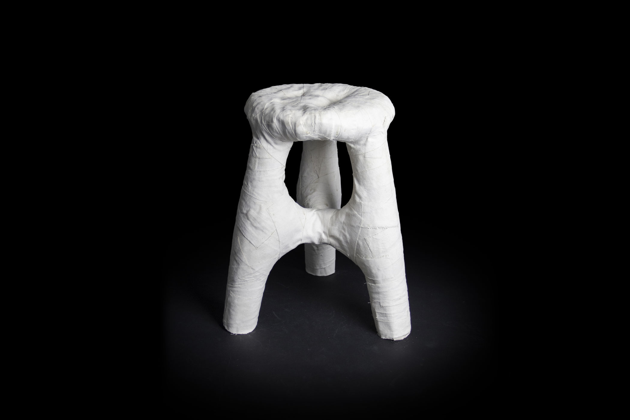 Concept for a compostable chair made out of bone glue, sand and linen. Created in collaboration with